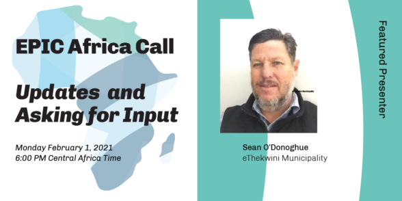 During this meeting, Sean O’Donoghue from the EThekwini Municipality in South Africa and co-leader of the EPIC Africa network will lead the first EPIC Africa Call of the year. He’ll begin with an update from recently presenting at the Gobeshona 7 conference. Attendees will then be asked to share about their progress adopting the EPIC Model in their local context. In the second half of the call Joe Lawton and Jacob Goble from Media-Objectives, the design firm contracting with the EPIC-Network global secretariat, will collect input from attendees to continue improving the EPIC Africa website. […]